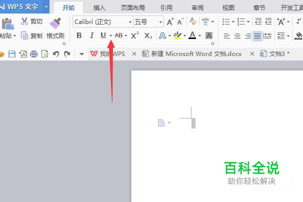 打开WPS文档,点击开始下加横线的字母U右下角的小三角。