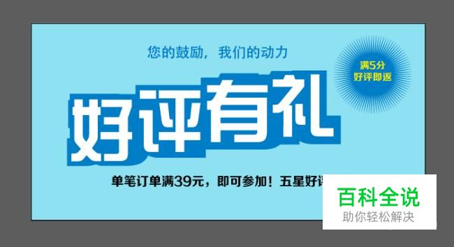 一张好看的5星好评+晒图的好评有礼,是现在的话大多数淘宝店铺商家都要制作的,这个的话对于许多的淘宝商家而言都市必须有的一项服务,使得我们的店铺的好评数量能够得到迅速的提高,增加我们的销量,今天,小编就为大家分享:“5星好评+晒图”好评有礼如何制作?