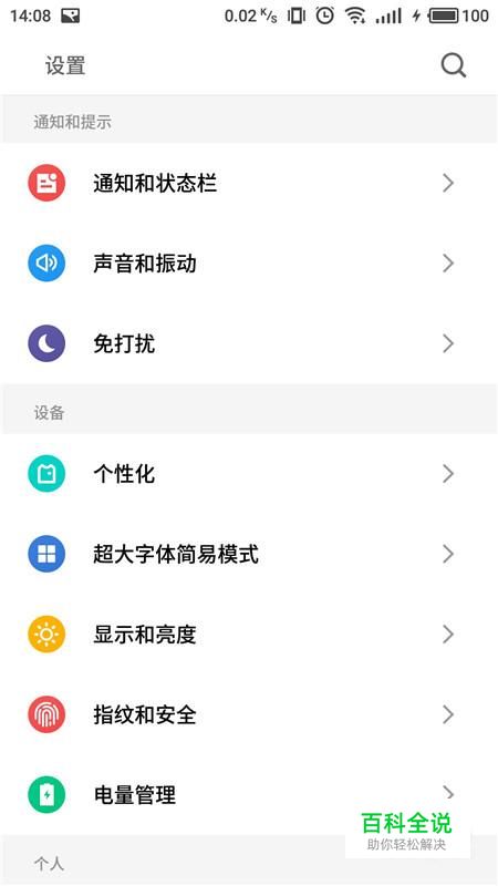 进入手机设置界面,选择“个性化”