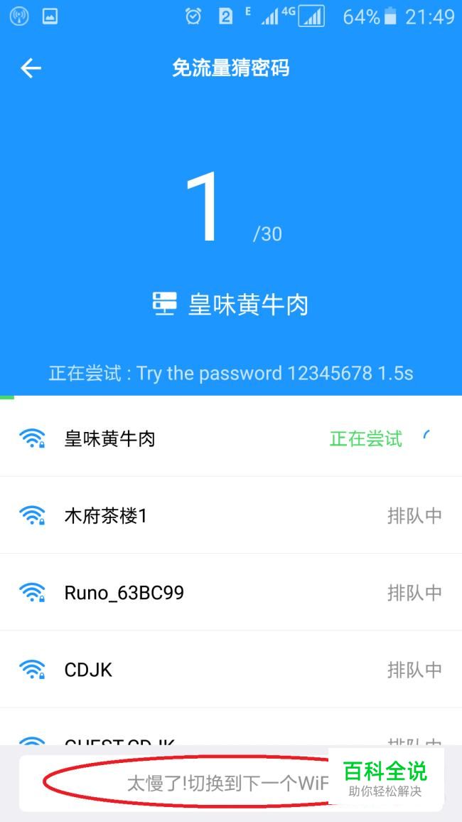 当连接太慢时,可以切换下一个WiFi进行连接。