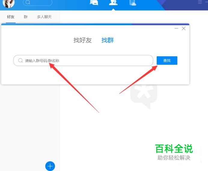 然后会进入到找群面板,此时在输入框里面输入qq群的号码,输入完成后单击“查找”按钮。