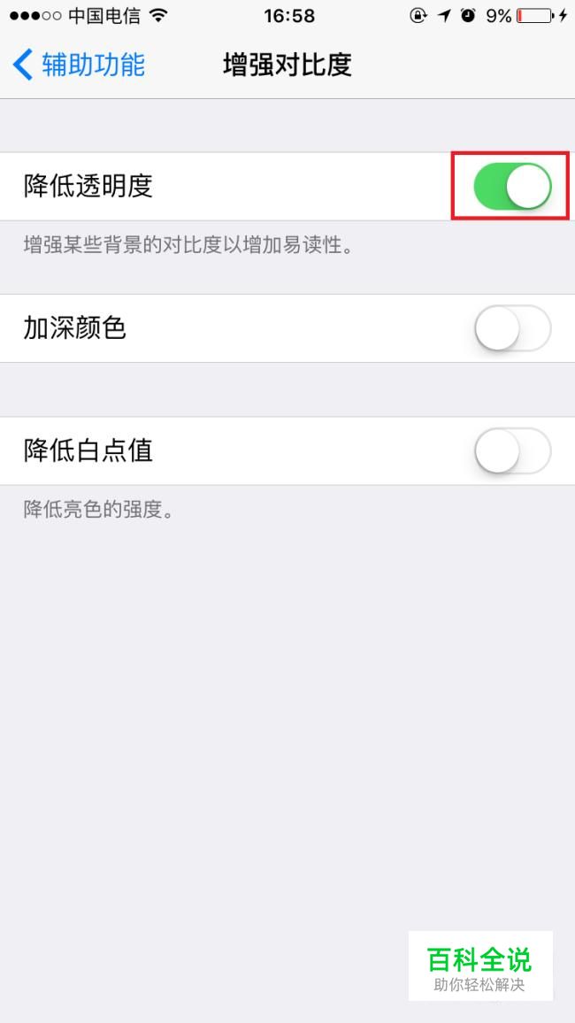 打开“降低透明度”开关。