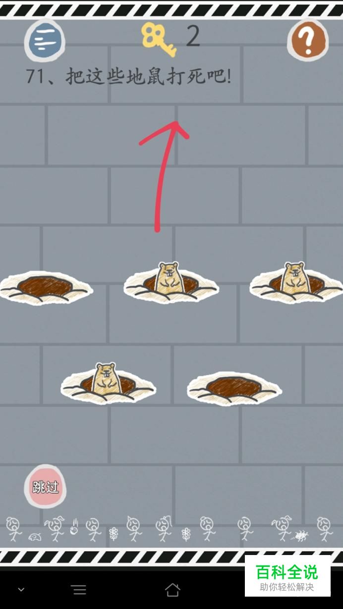 第七十一关:这些地鼠是打不死的,所以要将手机倒过来,让他们都掉下去。
