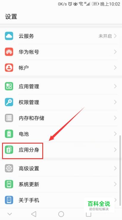 接着来到了我们手机设置界面,我们找到“应用分身”,点击打开,如图所示。