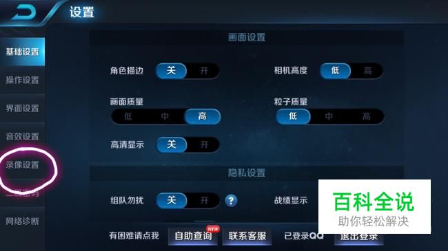 然后点击左边的录像设置。