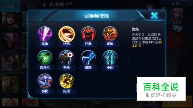 我在这里给大家介绍稳妥一点的打法。首先说的是技能,高渐离作为一个技能全伤害的英雄,个人建议的技能是斩杀,由于高渐离的大招加移速,所以不大推荐闪现