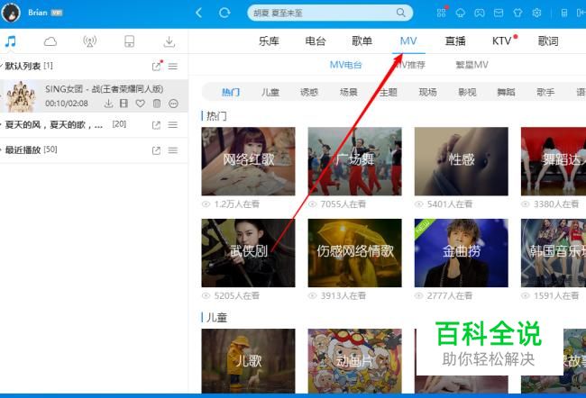使用QQ快捷登陆,点击分类栏的MV