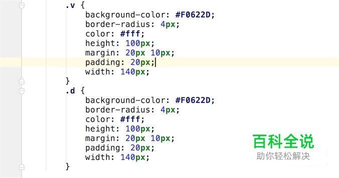 看下二个div的样式,.v, .d的样式现在都是完全一样的,如图, 我们主要设置了背景色,宽度和高度