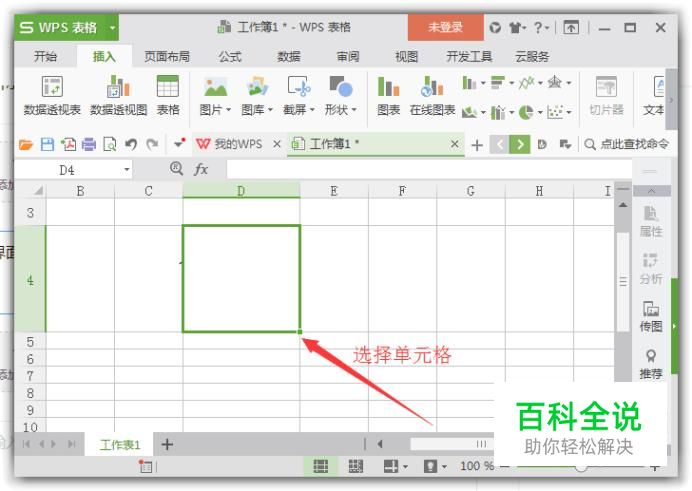 进入表格界面后,首先选中需要插入斜线的单元格,如图所示: