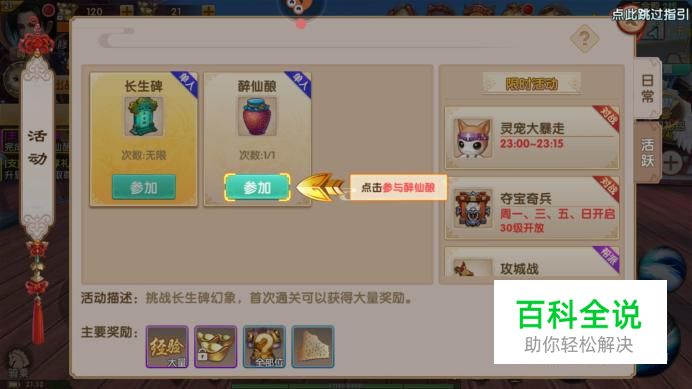 进入活动界面,选择醉仙酿活动参加。