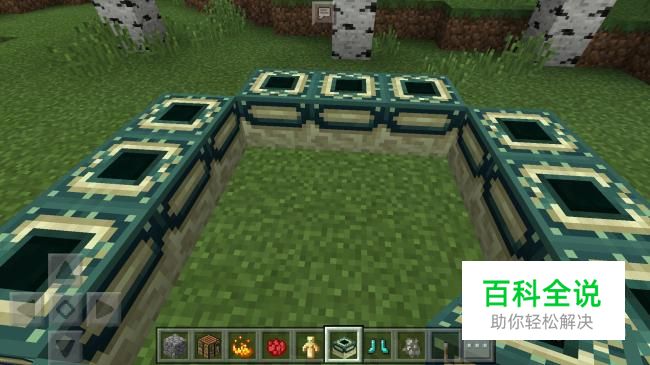 然后以我们为中心开始搭建末地传送门,这样末地传送门的石块在搭建的时候是正对着我们的。只有末地传送门的石块全部正面朝内才能激活。