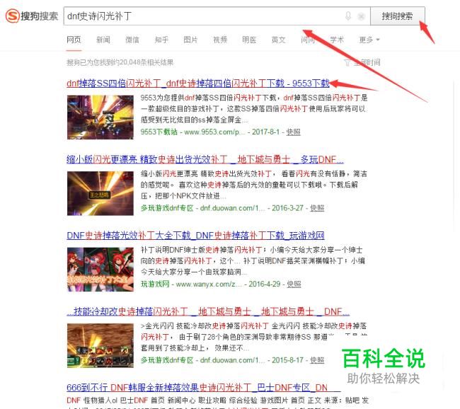 现在搜狗搜索引擎上面搜索‘dnf史诗闪光补丁’,点击进入其中一个网页