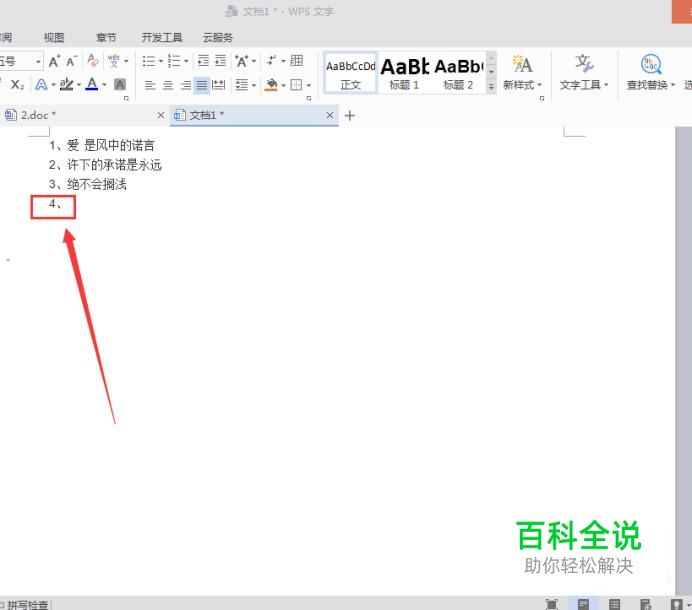 去掉自动编号不代表以后文档都不会再有自动编号功能了,我们再以序号作为开头编辑段落,会发现自动编号又出现了,使用上述三种方法即可删除编号。