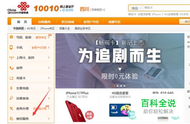 进入“中国联通官网”,会看到下面有一个便民服务,点击便民服务。