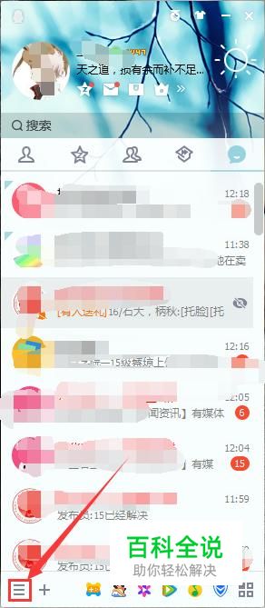 首先我们进入到qq的主菜单。然后点击左下角类似于三条横线的标志,如图所示
