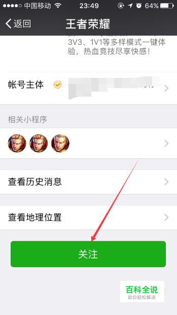此方法需要玩家关注王者荣耀微信公众号后才有一定的几率获得狄仁杰的锦衣卫皮肤,首先我们关注王者荣耀微信公众号。