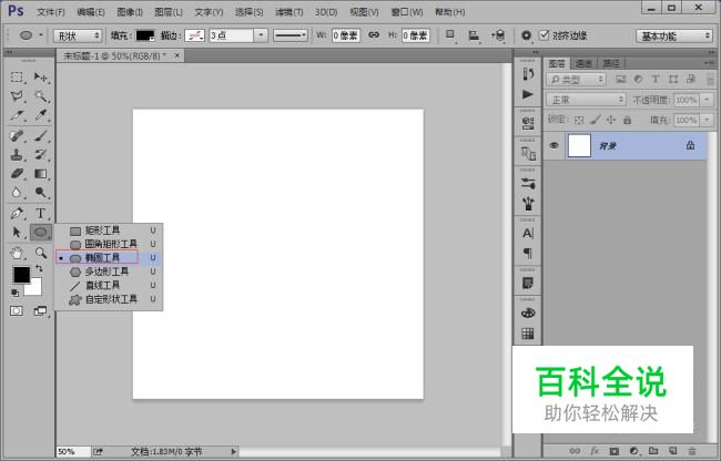 下面,我们选择椭圆工具,鼠标左键长按矩形工具或者鼠标右键单击矩形工具都可以打开矩形工具栏,然后选择椭圆工具。