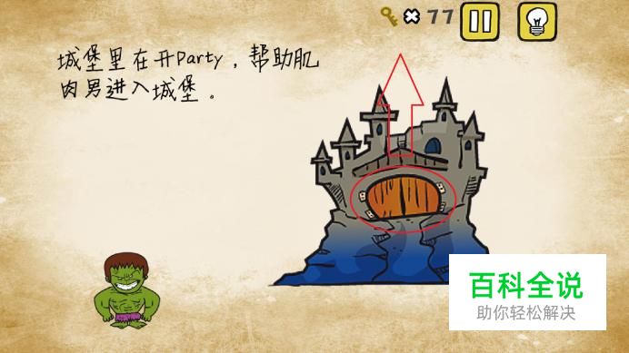 第十三关,让我们帮助肌肉男进入城堡,城堡肯定有门呗,我们用手指将城堡的门向上滑动,将城堡的门打开,肌肉男就能进入城堡了。