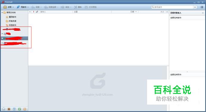 打开Foxmail软件,左侧栏为我们所添加的邮箱,中间为邮件区,右侧为功能区