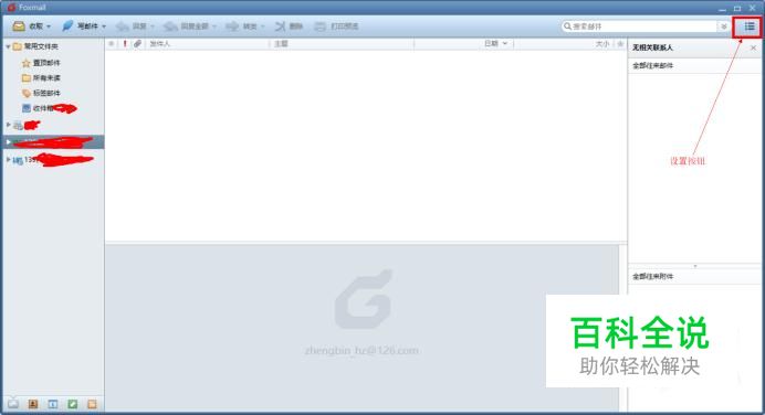 大概了解Foxmail的功能后,我们点击右上角设置按钮,在出现的下拉菜单中选择“设置”