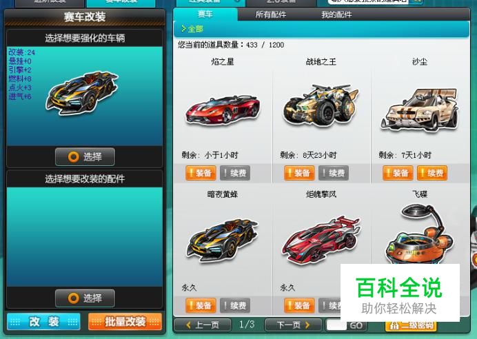 点击我的配件,选择要使用的改装配件再点击改装就可以改装赛车了
