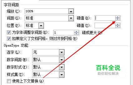 找到“字符间距”下的“间距”设置,在下拉选项中勾选“标准”。