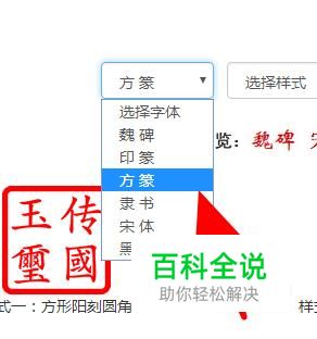 选择印章的字体,又下面几个选择,篆书,宋体等。