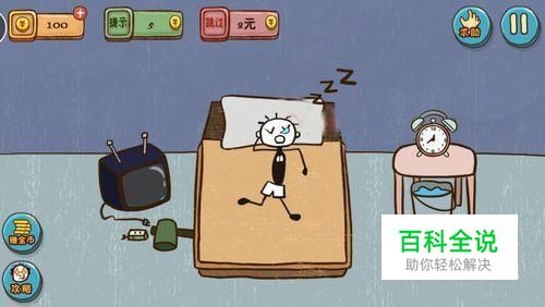 比如第一关的任务是叫醒坑爹男,房间里会有一张床,坑爹男正躺在床上呼呼大睡,整个房间里布满道具,有电视有闹钟,还有一些过关神器。