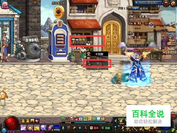 到达npc卡妮娜的身旁点击卡妮娜点击商店。