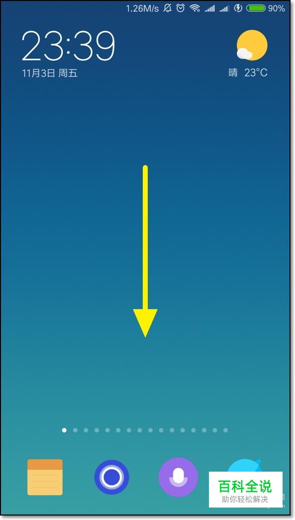 在小米手机的主界面,向下面滑动,打开通知栏。
