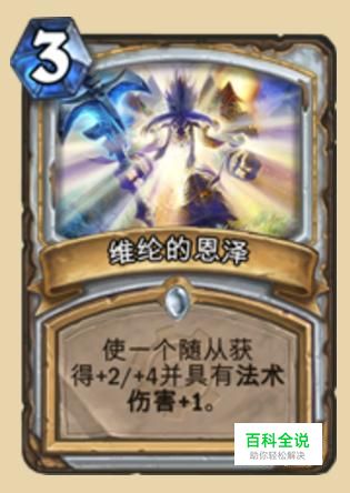 维纶的恩泽,牧师的神卡,3费给一个随从加2加4,还能加法伤,如果能在2费场上有一个随从,3费加个恩泽稳的不行,2费硬币328,3费恩泽也是牧师非常强的套路,基本可以一直站场了。