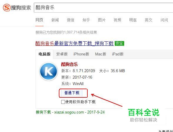 在搜狗搜索引擎中输入关键词“酷狗音乐”
