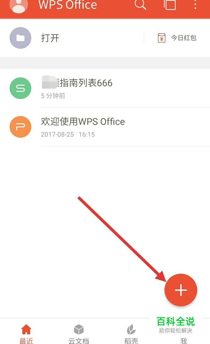 打开手机,点击WPS Office,在打开页面点击如图所示+号。