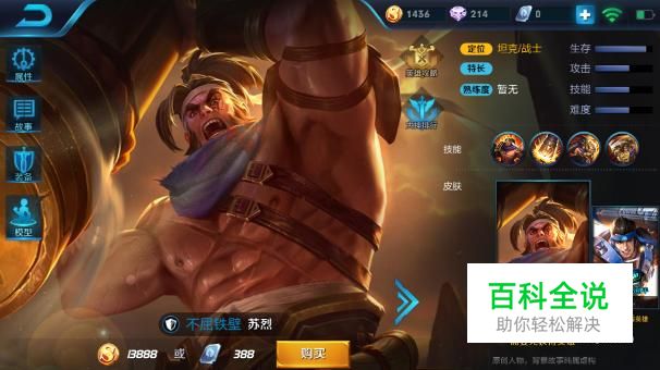 在王者荣耀游戏中,苏烈的定位为坦克/战士。所以玩家进入到英雄→坦克页面也能找到苏烈,之后点击购买按键即可。