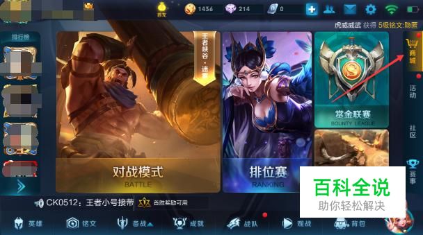王者荣耀新出的英雄基本上都能在商城中购买获得,首先点击游戏中的“商城”。