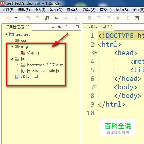 打开Hbuilder,新建一个轮播图的项目,如图,轮播图用到有图片,哈哈,这里我就只用一张图片进行轮播,如果喜欢多图轮播就准备好多张图片,还有把bootstrap以及jQuery插件放进去。