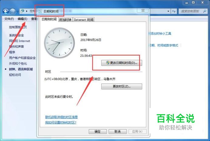 日期和时间 在弹出的窗口中,点击【日期和时间】链接,如下图所示: