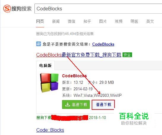 在搜狗搜索引擎中输入关键词CodeBlocks