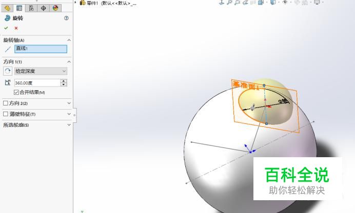 接下来我们选择旋转命令,将草图里的半圆旋转成球体。