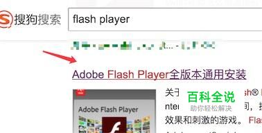 打开搜狗搜索,输入 flash player进行搜索,点击打开Adobe官方网站