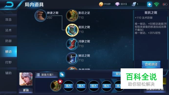 第一件装备:鞋子(看情况而出) 对面敌人物理伤害多出影忍之足,魔法伤害多出抵抗之靴,提高生存能力,自己有能力生存出急速战靴,提高战斗能力。