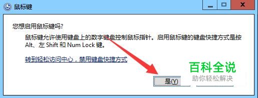 启用鼠标键,按下键盘的Y选择是。