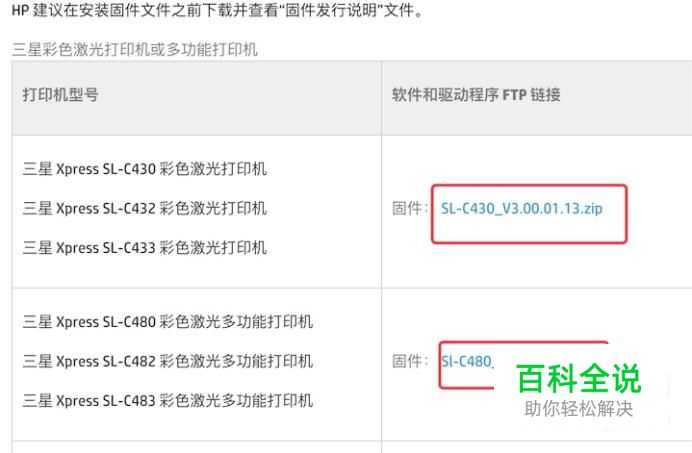在该页面下,往下找到自己打印机的型号,然后点击右边的文件进行下载,