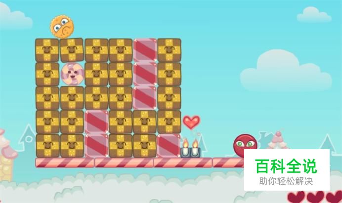 敲碎后,主角就往右滚动了,并依次吃掉第一颗和第二颗红心。
