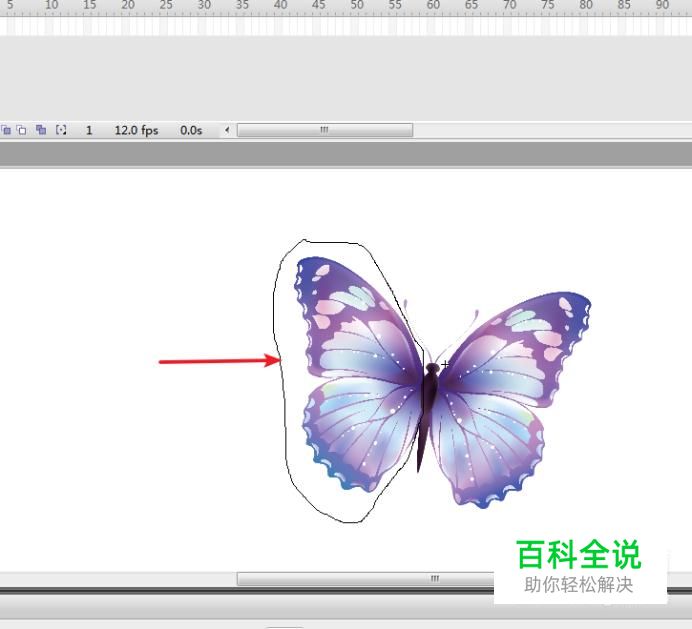 使用套索工具,沿着蝴蝶的翅膀区域绘制一个范围。
