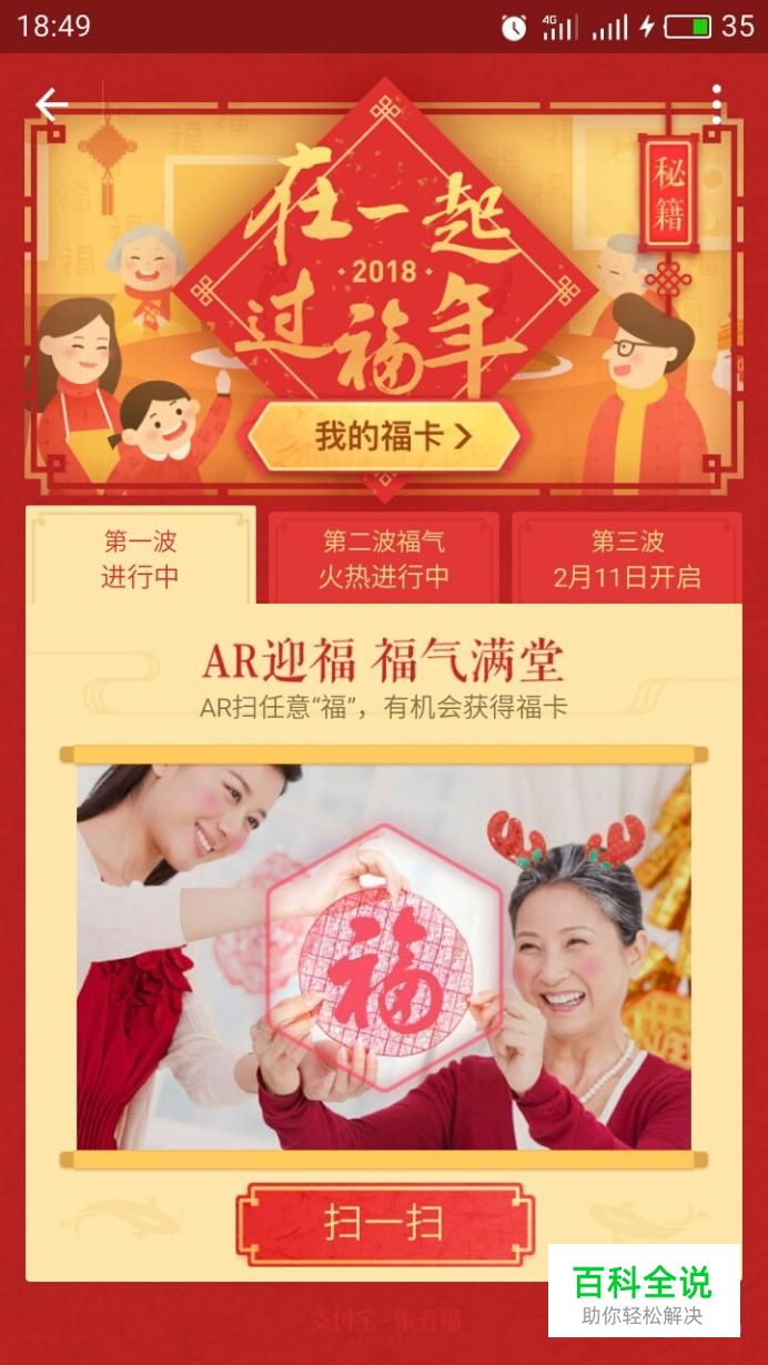 AR扫福字的福卡(2月6日-2月15):除了传统的扫福字得福卡,今年新增扫“五福到”手势的福卡。
