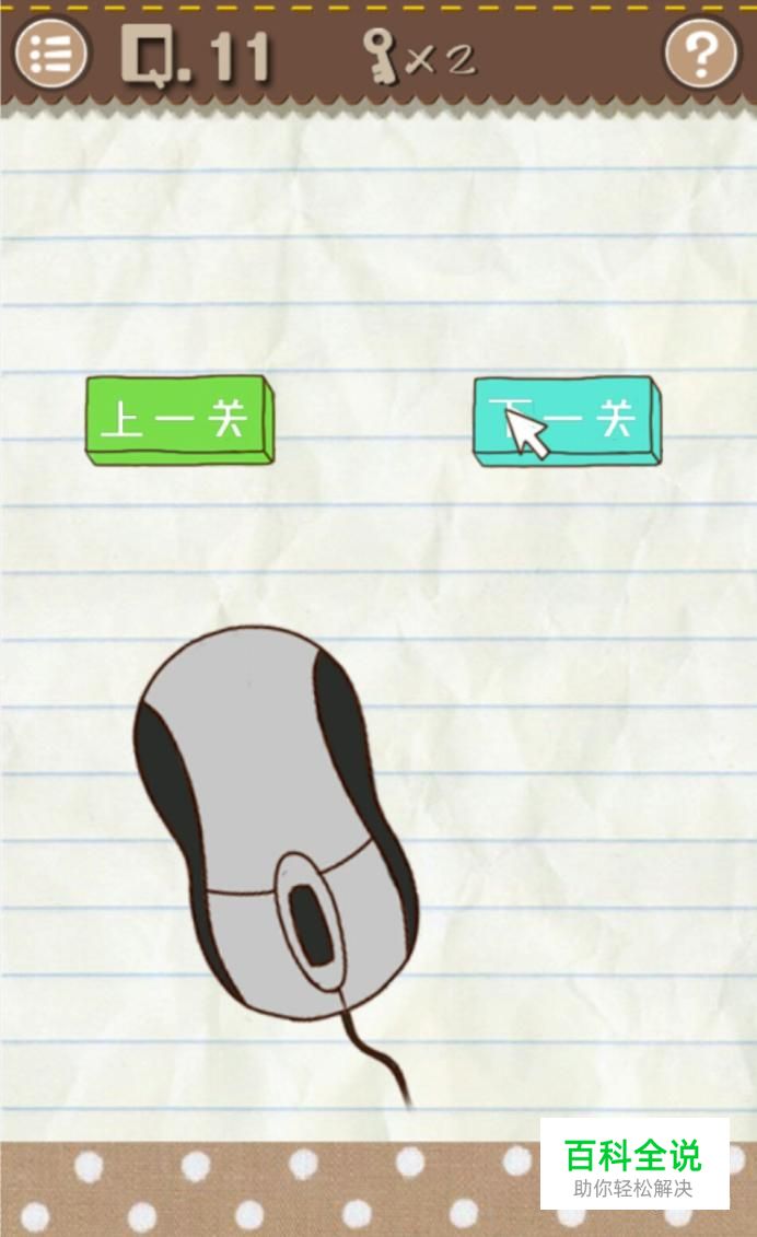 第11关:用图中的鼠标来控制箭头,将箭头移到“下一关”的按钮上,然后就能通过这一关啦。