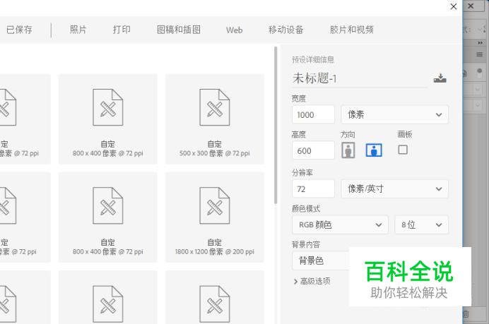 打开ps软件之后,我们新建一个如图所示的画布。