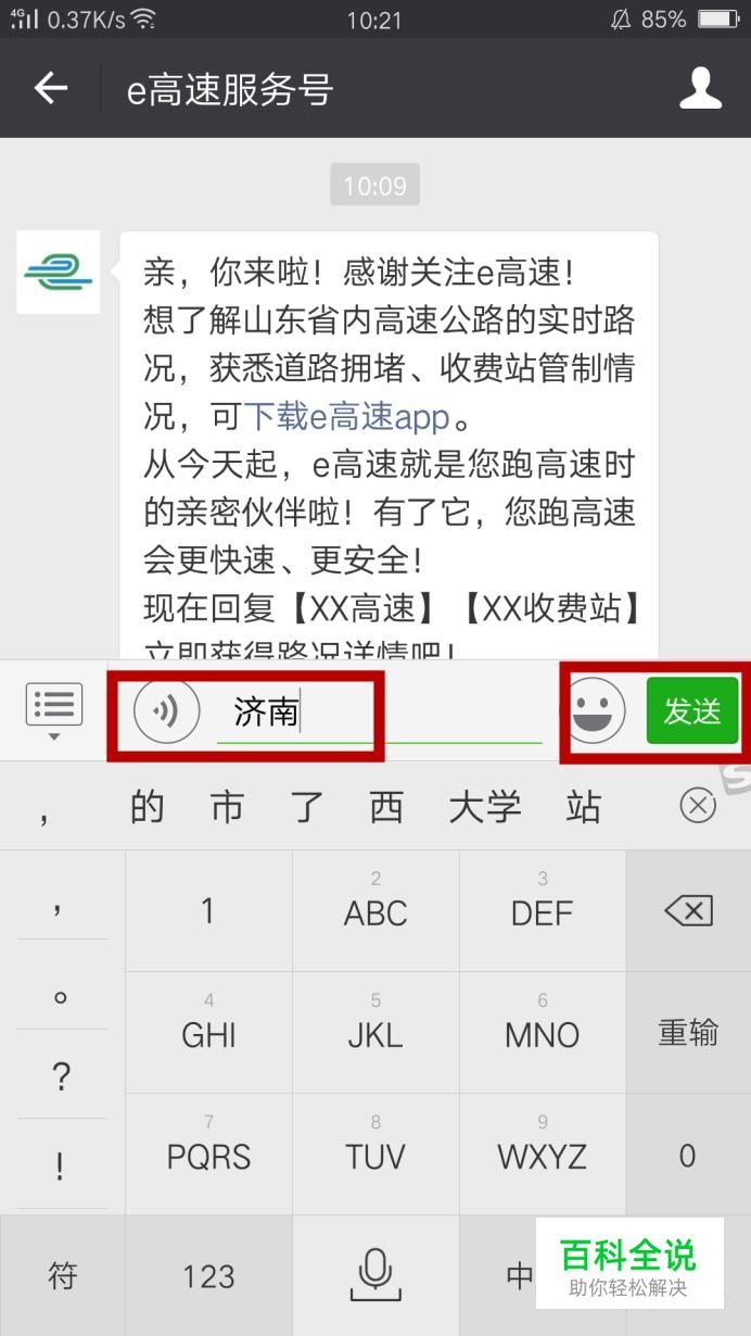 输入济南,点击发送。