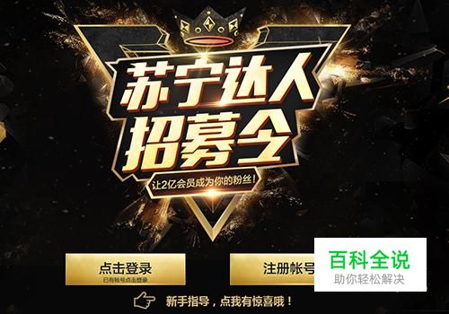 注册苏宁达人: 搜狗搜索苏宁达人招募令,进入页面点击注册账号(若已有苏宁易购账号的朋友可以直接点击登录),按相关要求填写资料提交审核即可。